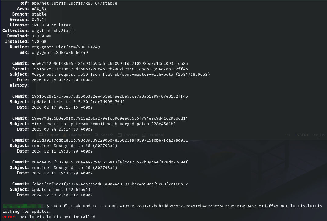 So i updated flatpak version of Lutris to 0.5.21 on Linux Mint 22.3 and after that the Lutris UI would not load anymore.